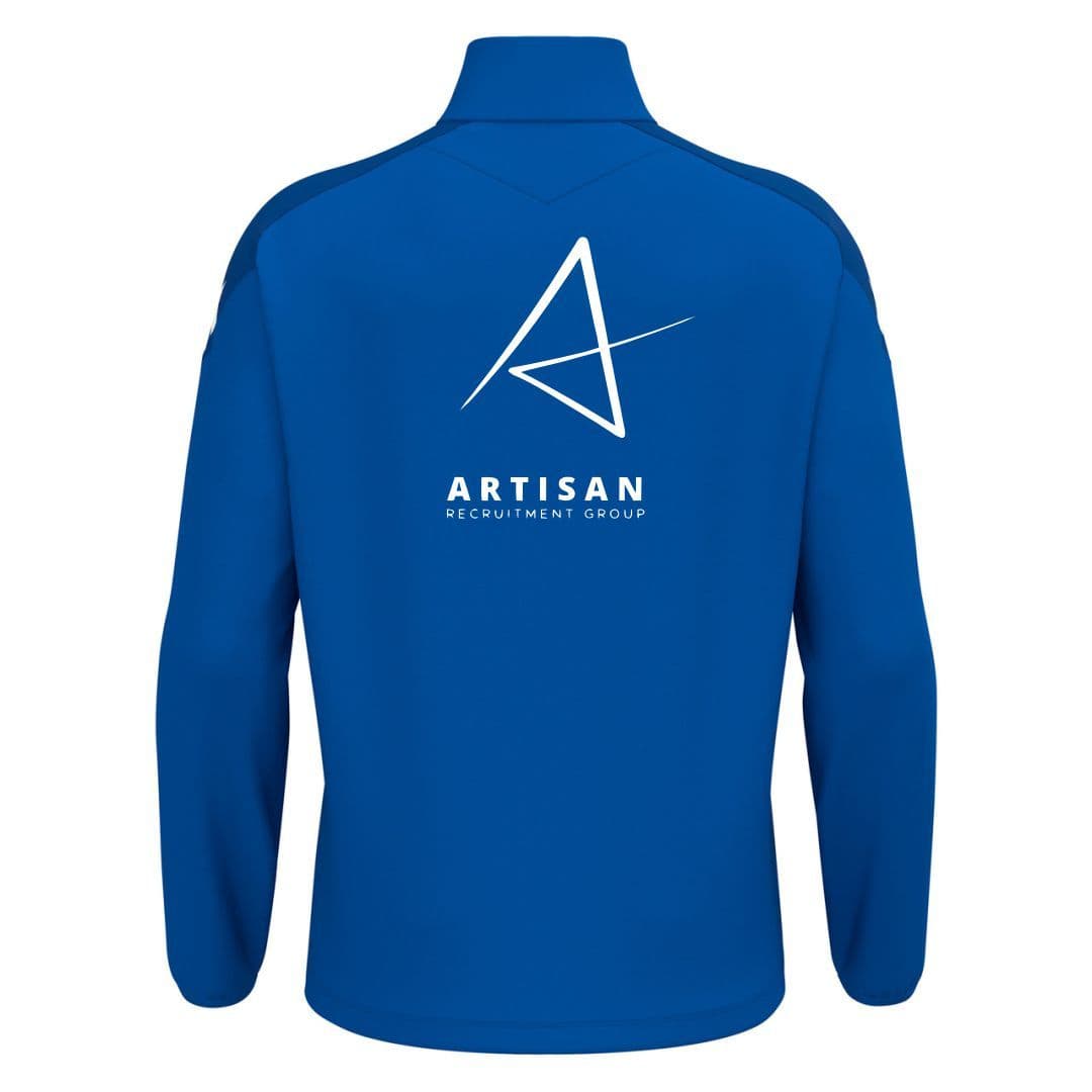 Macron Royal Blue Anduin 1/4 Zip Track Top, comes with Baffins Milton Badge & Artisan Recruitment Sponsor Logo on reverse.